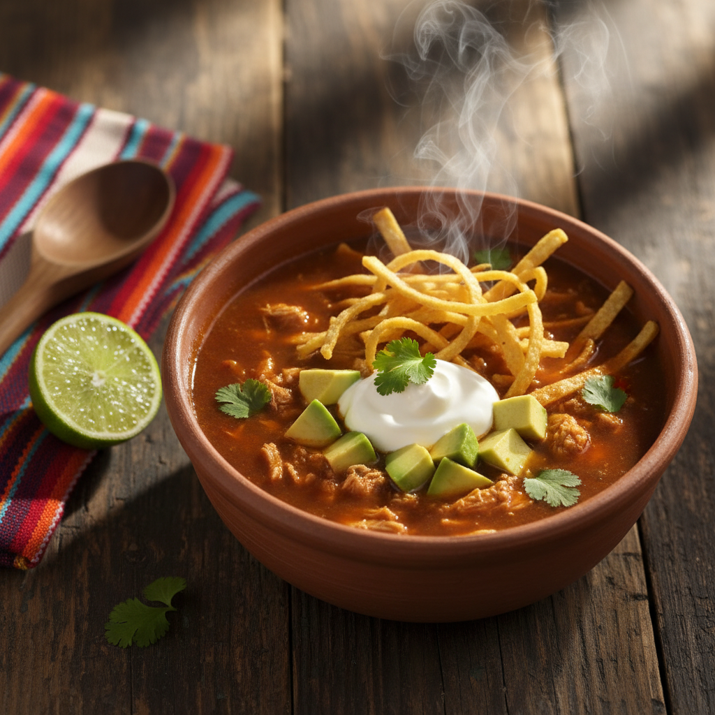 This vibrant Chicken Tortilla Soup is the definition of comfort in a bowl, combining tender shredded chicken, hearty black beans, and a rich, spicy tomato broth. Topped with crunchy homemade tortilla strips and creamy avocado, it is a restaurant-quality meal ready in under an hour.